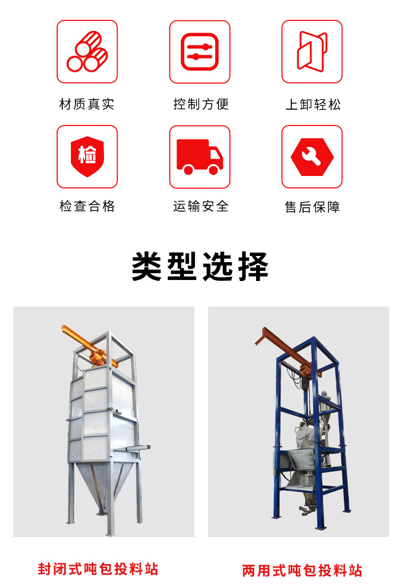 【物料要求】:粉末顆粒物料 【產(chǎn)品簡(jiǎn)述】:噸包投料站解決了噸包物料在投料過(guò)程中有粉塵飛揚(yáng)的現(xiàn)象,使用收塵裝置,解決粉塵飛揚(yáng)...